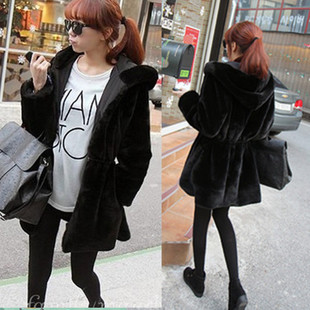 韓國新款仿皮毛兩面穿外套連帽棉衣加厚長袖棉服 /