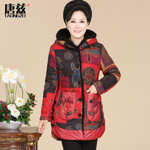 中老年女裝秋冬新款棉服 媽媽裝時(shí)尚中長(zhǎng)款大碼連帽棉衣廠家混批 /