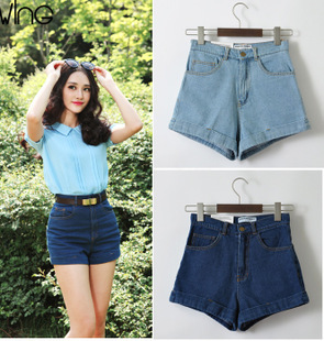 復(fù)古高腰牛仔短褲AA牛仔短褲休閑寬松大碼短褲 免費一件代發(fā)女裝 /