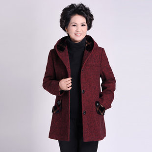 中老年大碼女裝中秋冬裝連帽外套 時(shí)尚媽媽裝大衣長(zhǎng)款羊毛呢風(fēng)衣 /