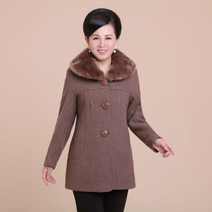 中年女裝秋裝毛領(lǐng)呢外套女中老年秋冬裝媽媽服裝新品大衣 中長(zhǎng)款 /