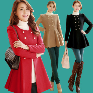 唯蒔 2014韓版新款秋冬女裝中長款毛呢大衣女裝外套妮子風衣 /