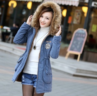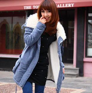唯蒔2014韓版新款羊羔絨加厚棉衣女中長款寬松毛領保暖外套女裝 /