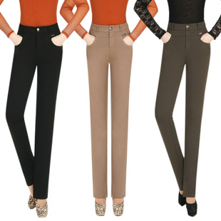 冬季爆款中老年女裝大碼修身休閑褲女式高腰彈力加絨加厚鉛筆褲女 /