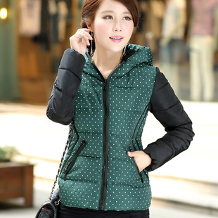 2014冬新款韓版修身短款棉衣女裝點點羽絨棉服外套連帽棉襖批發(fā) /