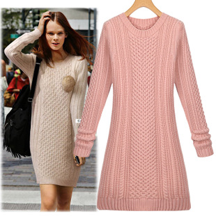 2014春裝新款正品歐美多色圓領(lǐng)長袖貂絨裙針織衫女修身連衣裙 /