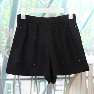 八淘九樂2014歐美新女冬裝高腰釘珠毛呢闊腿短褲1143064080現(xiàn)貨 /