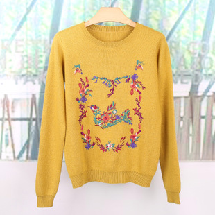 八淘九樂2014歐美新女冬裝刺繡圖案圓領(lǐng)套頭毛衣2144033480現(xiàn)貨 /