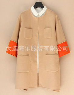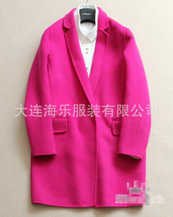 廠家批發(fā) 韓國品牌 14秋冬中長款寬松雙面手縫羊絨大衣外套 /