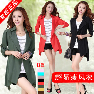 專柜2014春秋新款韓版修身開衫中長款大碼OL超顯瘦休閑女風衣外套 /