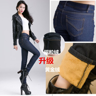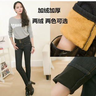 冬季爆款韓版大碼女裝加絨牛仔褲保暖高腰加厚鉛筆女長褲一件代發(fā) /
