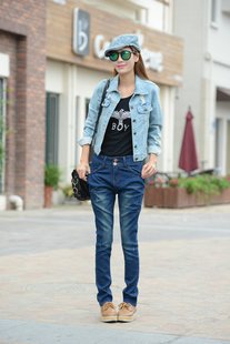 一件代發(fā)新爆款女裝韓國牛仔褲大碼寬松破洞哈倫褲九分女式牛仔褲 /