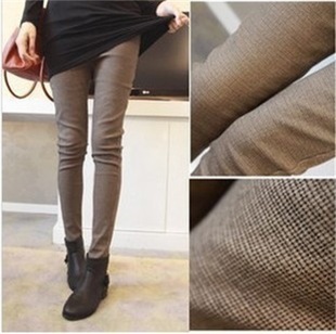 2014韓國(guó)秋冬新款磨毛加厚加絨顯瘦小格子大碼保暖鉛筆打底褲 /