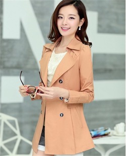 秋季新款女裝修身韓版中長(zhǎng)款長(zhǎng)袖雙排百搭風(fēng)衣外套 /