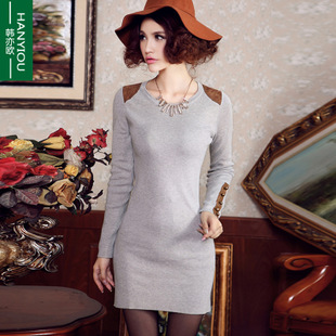 2014秋冬新款 高品質(zhì)長款包臀韓版修身低領(lǐng)打底加厚毛衣裙 /
