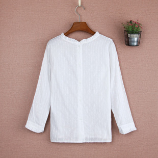 2014秋裝韓國小清新百搭白色花邊立領(lǐng)點(diǎn)點(diǎn)條紋休閑寬松長袖襯衫 /