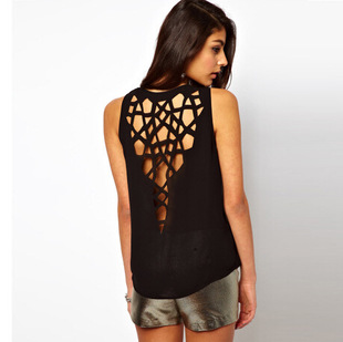 2014歐美性感背后鏤空破洞露背圓領(lǐng)背心T恤 /
