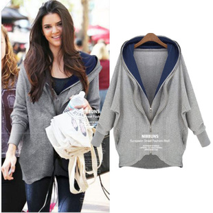 2014秋冬新款歐美風(fēng)不規(guī)則外套雙拉鏈大碼女裝顯瘦連帽衛(wèi)衣外套 /