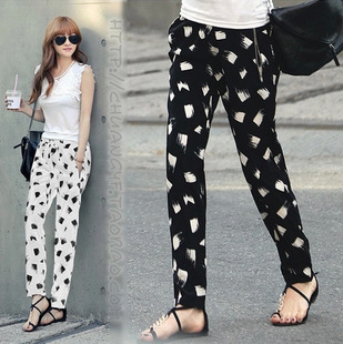 歐洲站新款女褲 夏裝雪紡印花寬松大碼哈倫褲顯瘦休閑小腳長褲子 /