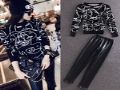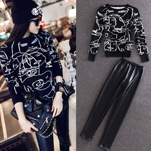 歐洲站14 嗆口小辣椒 箐箐同款 針織毛衣+加絨皮褲套裝 廠家直銷 /
