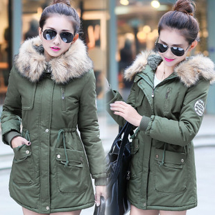 2014秋季新款 韓版中長(zhǎng)款毛領(lǐng)加厚棉衣大碼收腰棉服外套女棉襖 /