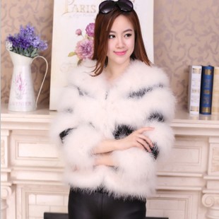 2014海寧皮草 鴕鳥毛外套 火雞毛真毛外套 女裝特惠價春秋款促銷 /