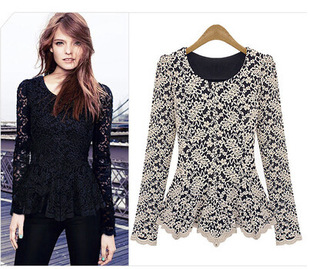 速賣通EBAY貨源歐美時尚長袖圓領(lǐng)蕾絲打底T恤SK070045 一件代發(fā) /