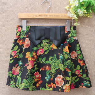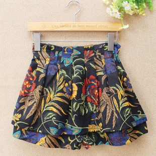 2014春夏時尚新款復古印花裙褲顯瘦松緊高腰氣質(zhì)半身百褶短褲熱褲 /