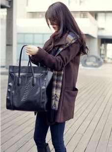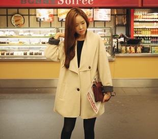 2014韓版秋季新款大翻領修身顯瘦中長款毛呢大衣 /