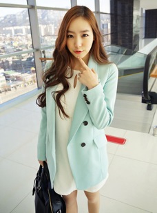 2014新款秋冬 粉嘟嘟 呢料 中長款小西裝 /