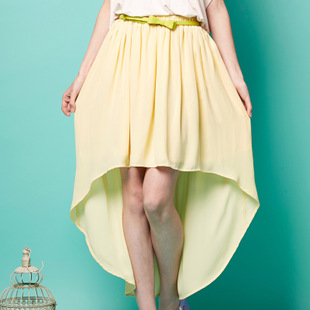 貼牌加工妙兮荷葉邊半身裙前短后長(zhǎng)半身裙不規(guī)則雪紡半身裙 /