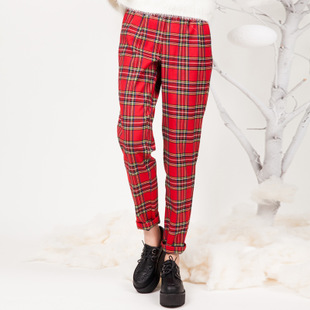 【淘工廠-貼牌加工】滌綸復(fù)古文藝長(zhǎng)褲高腰英倫格子休閑小腳褲 /