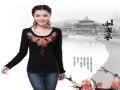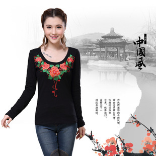 秋冬裝新款 民族風(fēng)領(lǐng)口刺繡百搭修身顯瘦大碼女裝 上衣代理批發(fā) /