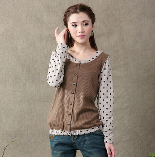 茵曼2014秋裝新款 女裝文藝波點(diǎn)開(kāi)衫短外套女廠(chǎng)價(jià)直銷(xiāo)一件代發(fā) /