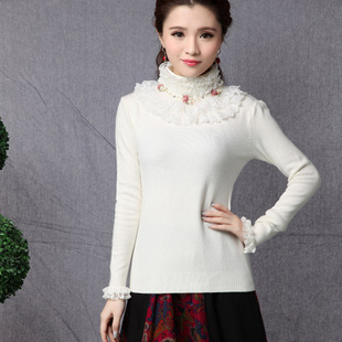 民族風(fēng)2014秋冬新款打底衫女 蕾絲花邊領(lǐng)厚款針織衫女廠(chǎng)家直批 /