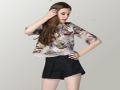 2014新款女裝數(shù)碼印花上衣+釘珠短褲兩件套裝 /