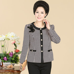 中老年女裝秋外套女千鳥格秋裝媽媽裝中年婦女裝秋款休閑外套女式 /