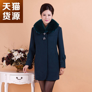中老年毛呢大衣女秋冬新款中老年女裝大碼加厚毛呢外套媽媽裝風(fēng)衣 /
