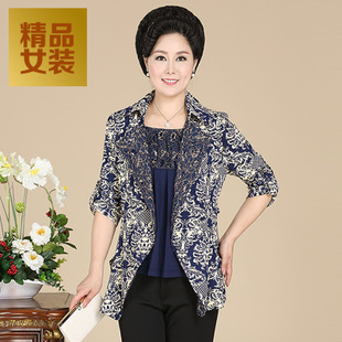 秋裝女大碼媽媽裝2014秋季新款長袖相拼外套中老年女裝秋裝外套女 /