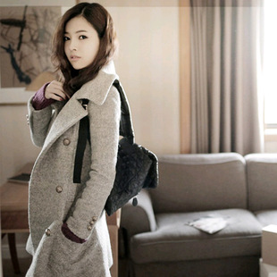 2014新款女冬裝外套 韓版呢子翻領(lǐng)修身風(fēng)衣 毛呢大衣 呢外套 /