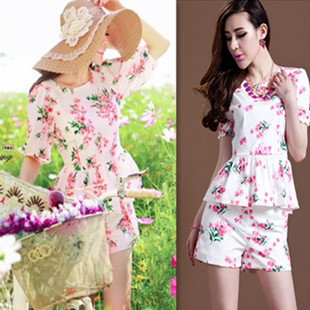 新款套裝女 菁菁同款歐洲站套裝 短袖短褲兩件套明星女裝批發(fā)套裝 /