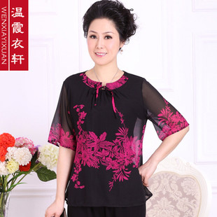 溫霞衣軒 中老年女裝短袖雪紡T恤 媽媽裝夏季新款中老年女裝新款 /