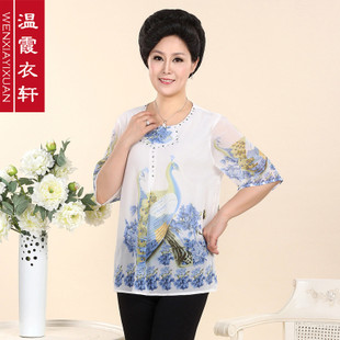溫霞衣軒 新款夏季中老年女式雪紡衫 休閑七分袖媽媽裝中老年女裝 /