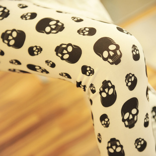 春秋新款歐美風個性時尚鬼頭原宿風骷髏頭打底褲女印花九分褲批發(fā) /