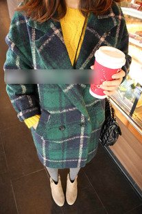A810 韓國東大門格子氣質(zhì)復(fù)古夾棉毛呢大衣外套 /