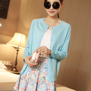 2014新款秋裝韓版鏤空薄毛衣外套打底圓領(lǐng)針織開衫長袖 誠招代理 /