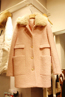 東大門冬季新款韓版毛呢外套女中長款氣質(zhì)優(yōu)雅加厚毛領(lǐng)羊絨大衣 /