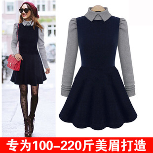 歐洲站2014秋裝新品歐美女裝胖mm大碼連衣裙顯瘦收腰打底裙潮 /