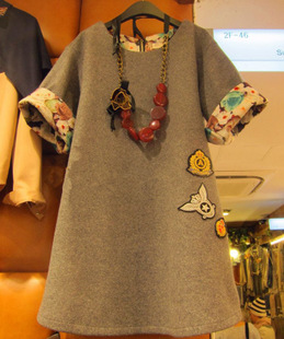 東大門代購秋裝新款加肥大碼女裝胖MM圓領(lǐng)寬松中袖羊毛呢連衣裙 /