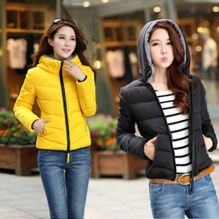 2014東大門女裝外套新款羽絨棉棉服外套純色連帽修身短款棉衣女 /